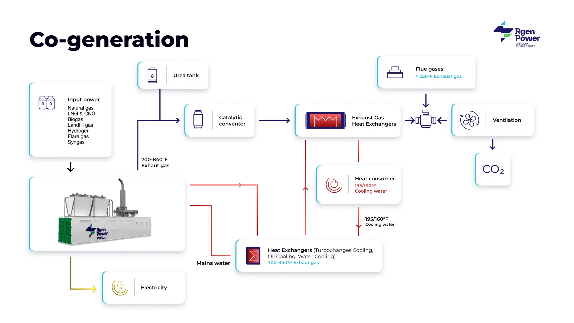 Generating electricity and heat is not the only possible use for reciprocating engines. A cogeneration power plant is also an opportunity to obtain cold (tri-generation) and produce CO2 for greenhouses.